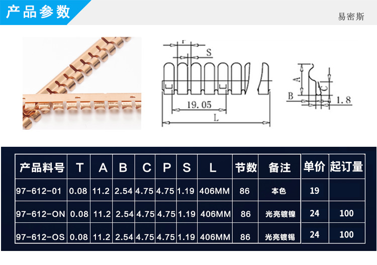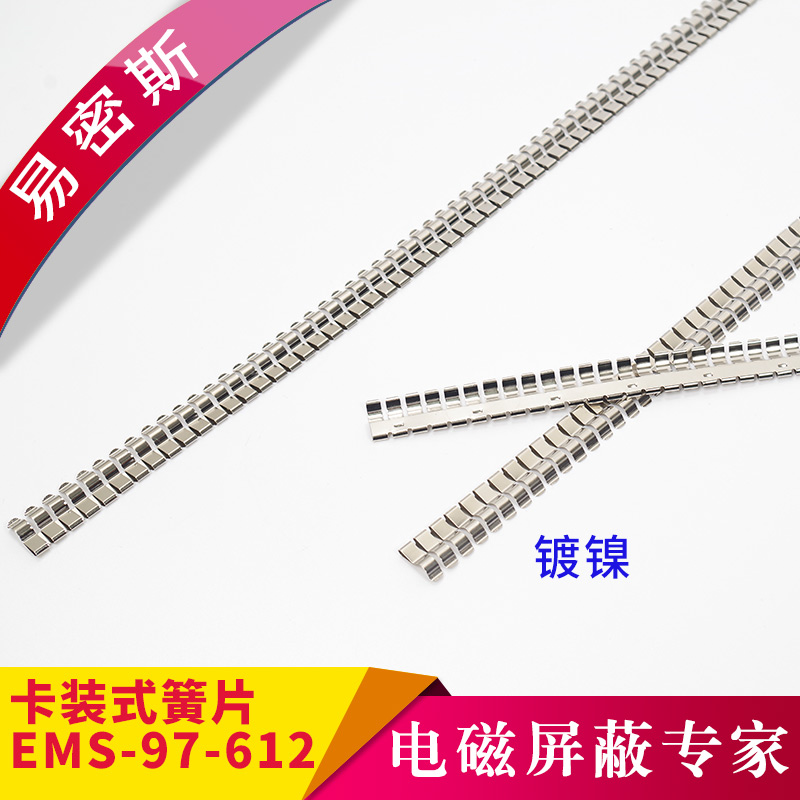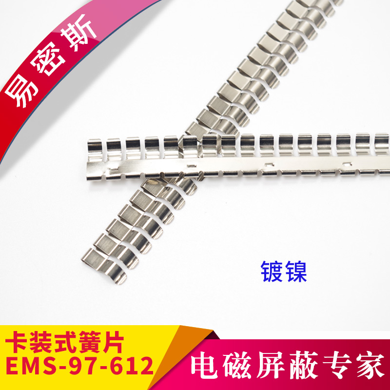 易密斯™鈹銅簧片由具有電磁兼容屏蔽效果的進口鈹銅合金C17200制成,具有優秀的抗壓性、回彈性和耐腐蝕性,并提供很好的寬頻電磁屏蔽效果,特別適用于通訊機柜、電腦、屏蔽室/門、面板及插拔件的間隙填充。易密斯™鈹銅簧片現有60余款標準件可供選擇,同時可支持定制。