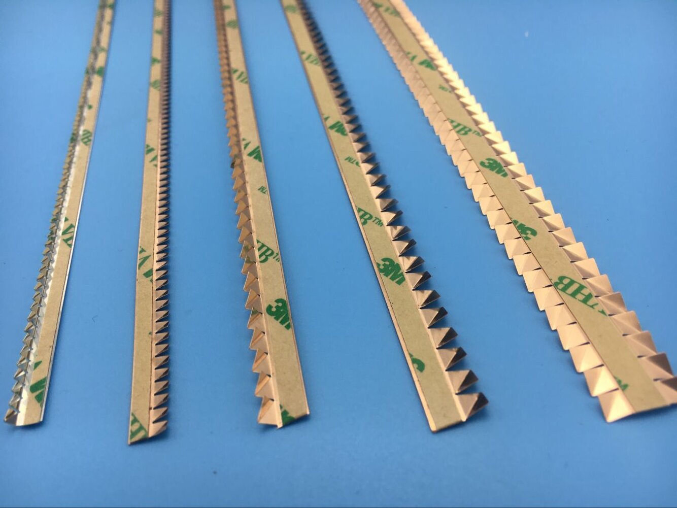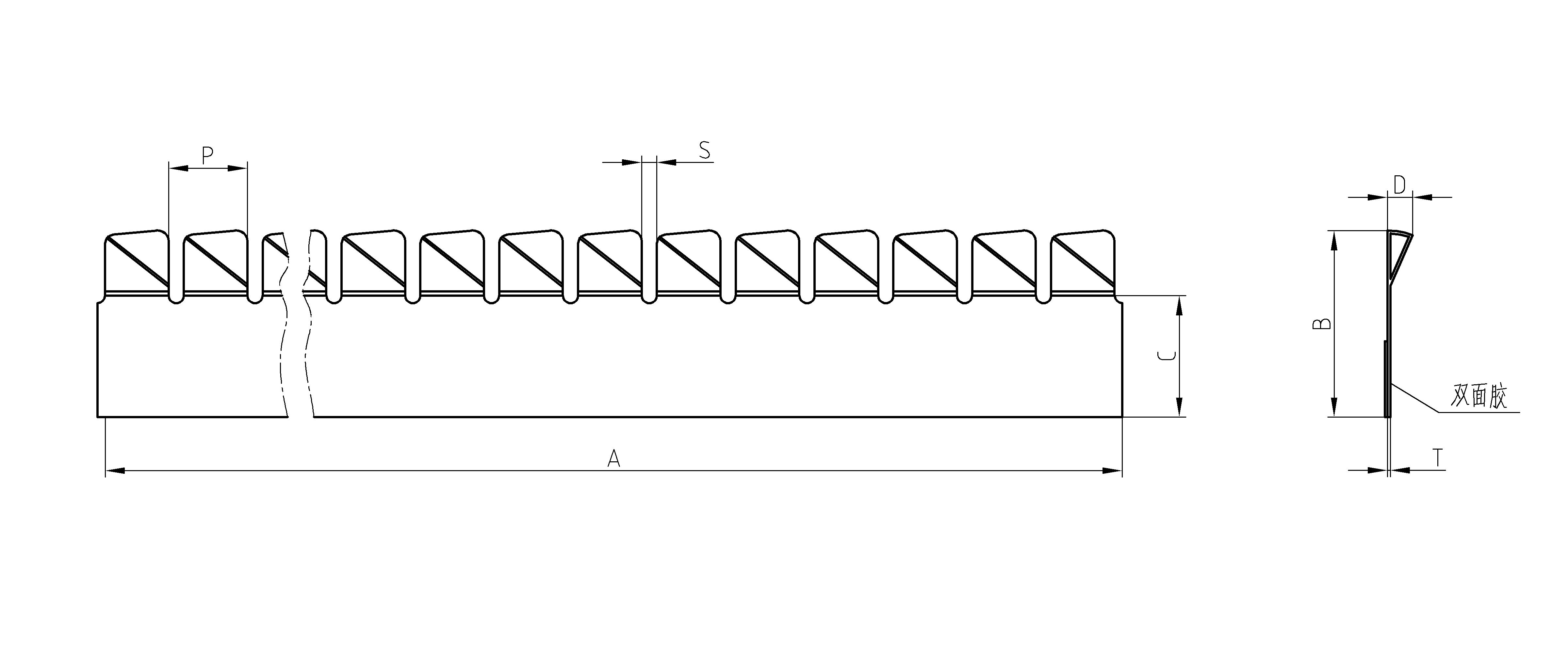 雙向扭轉型指形簧片,從圖中可以看到,在壓敏膠粘合面的兩側,都設計有可扭轉折疊的指形結構。相當于一次安裝,起到了兩條簧片的作用,再次節省了安裝空間。