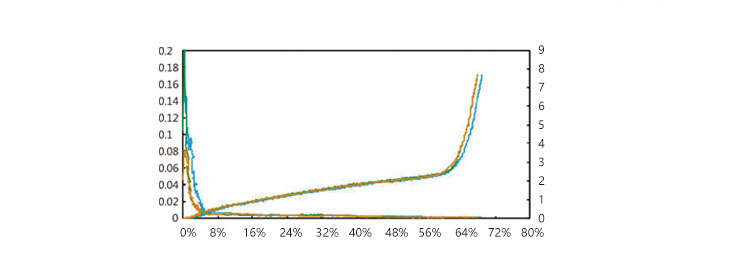 如下圖可知,金屬簧片在被壓縮15%-60%的范圍內,壓縮電阻很小,且幾乎沒有波動;同時,壓縮力在此范圍內也相對小,也沒有突然增大,這就是為什么我們經常推薦客戶設計間隙值為材料壓縮30%的值的原因。請咨詢我們的工程師提供一對一設計和產品選擇。